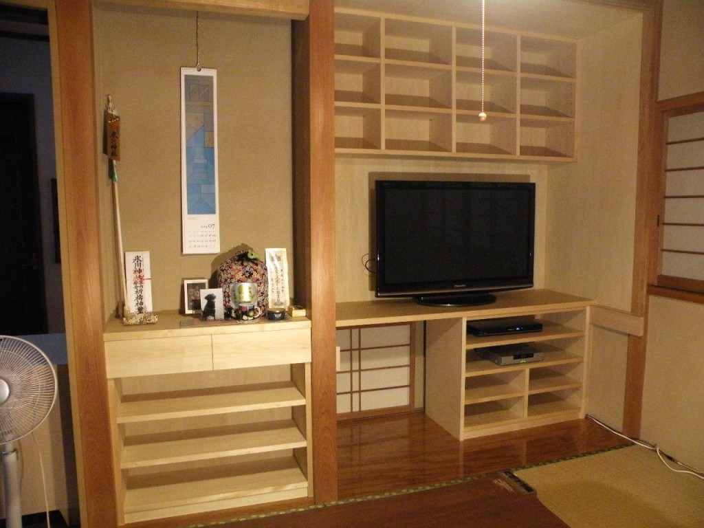 オーダーメイド家具 押入れ収納(テレビ台・本棚・整理棚)【シナ】無垢材 他