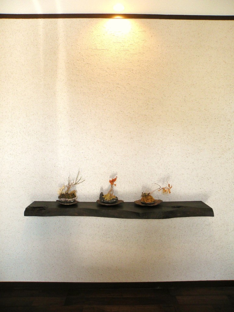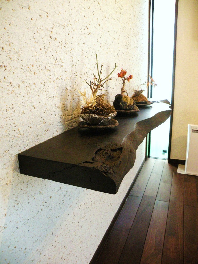 左官仕上げの壁に重厚な飾棚が付きました。