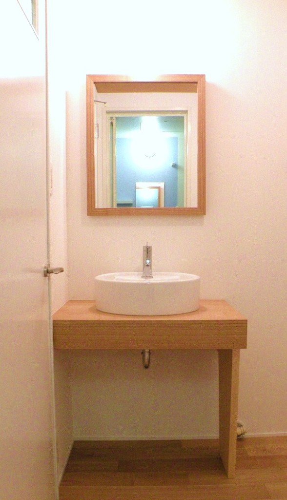 キューブお納めしたと同じ家に洗面台と鏡も設置しました。