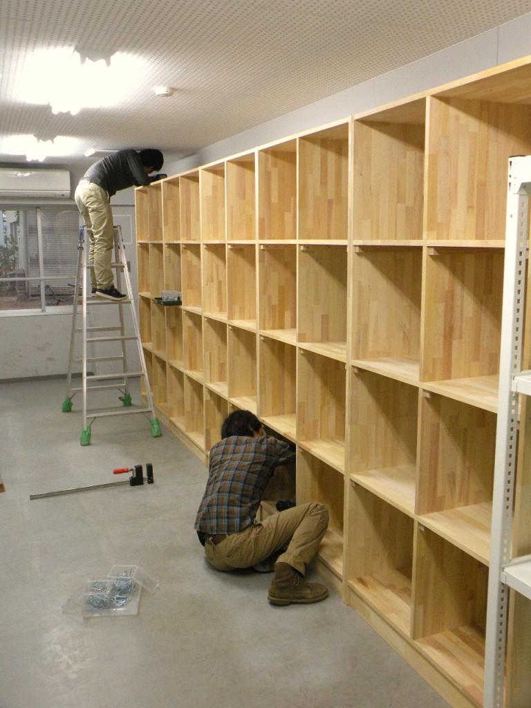 オーダーメイド家具 部室の収納棚【メルクシパイン】集成材