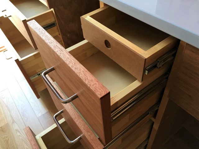こうすることで全体のラインを統一しながらも、浅めの抽斗を設けることができます。