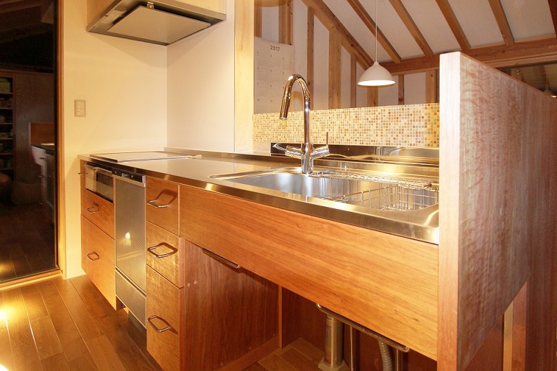 「予算の関係でラワン材を選びましたが、全くラワンのキッチンに見えないです」