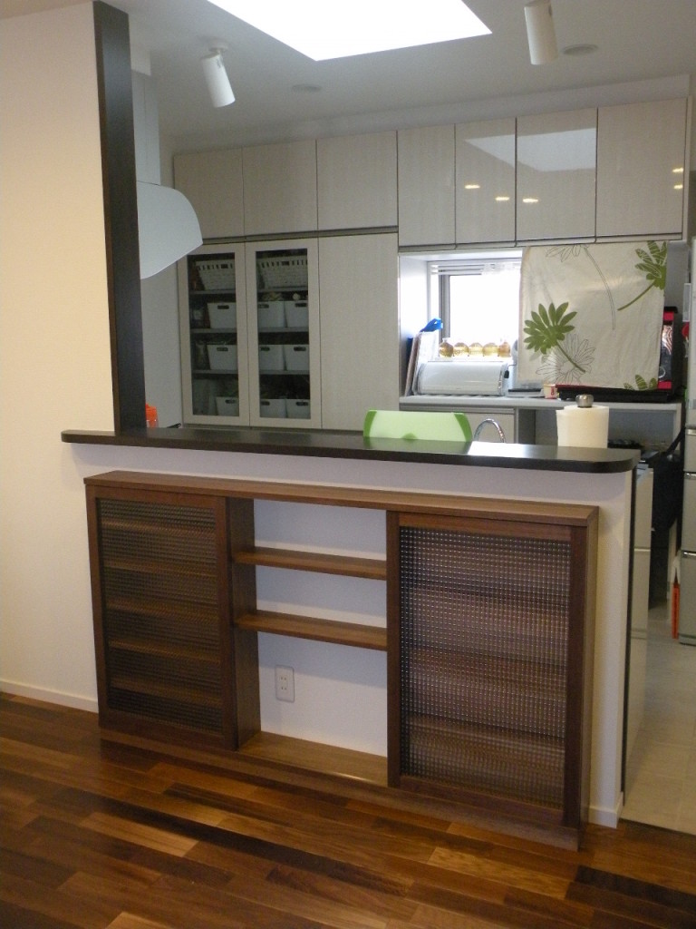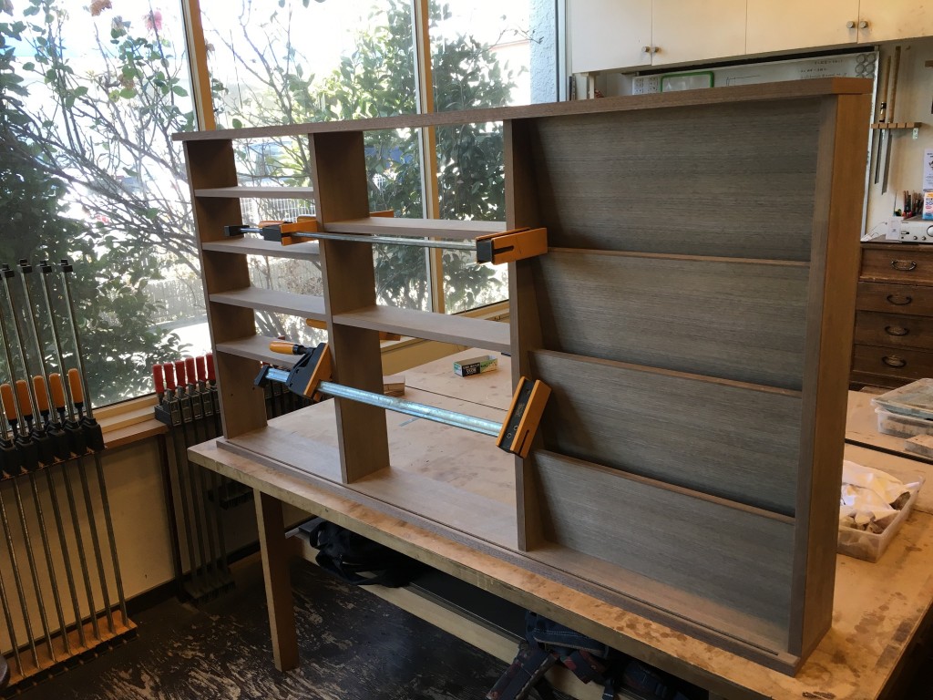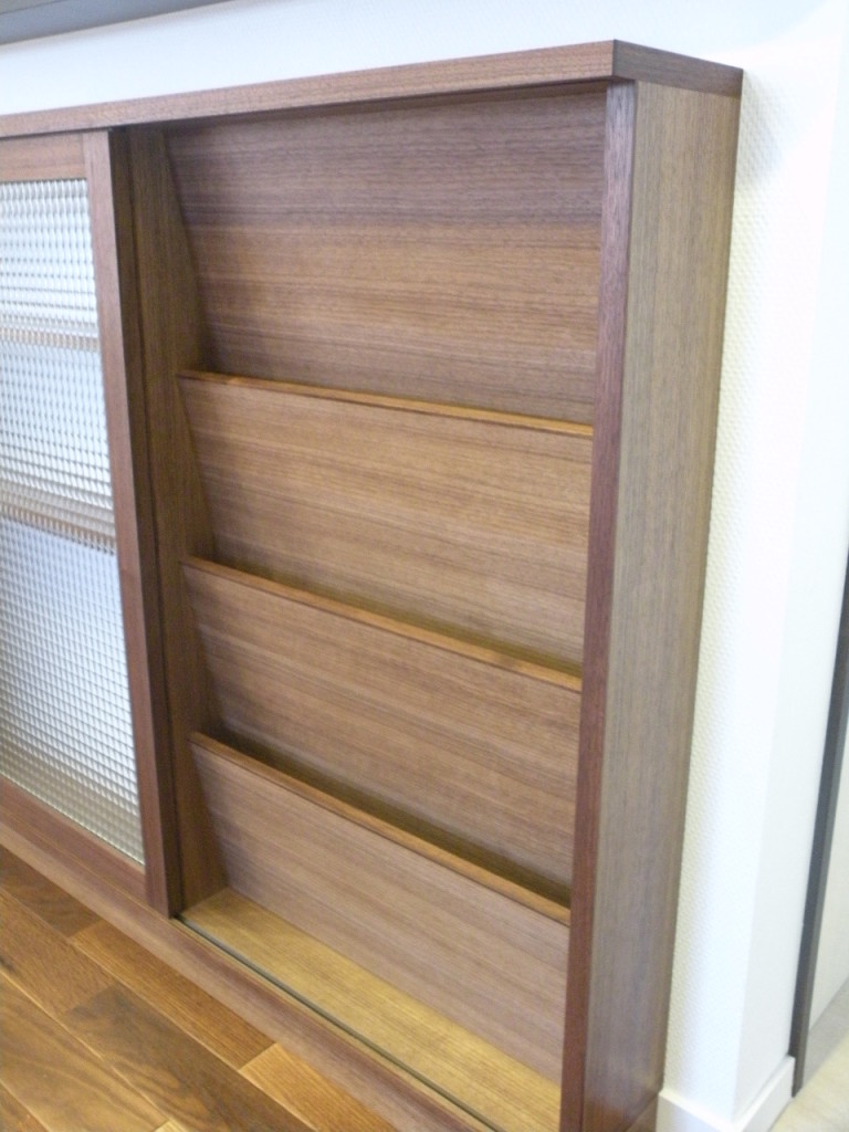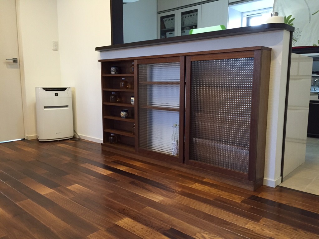 綺麗なウォールナットの化粧合板を使用した飾り棚を制作しました。