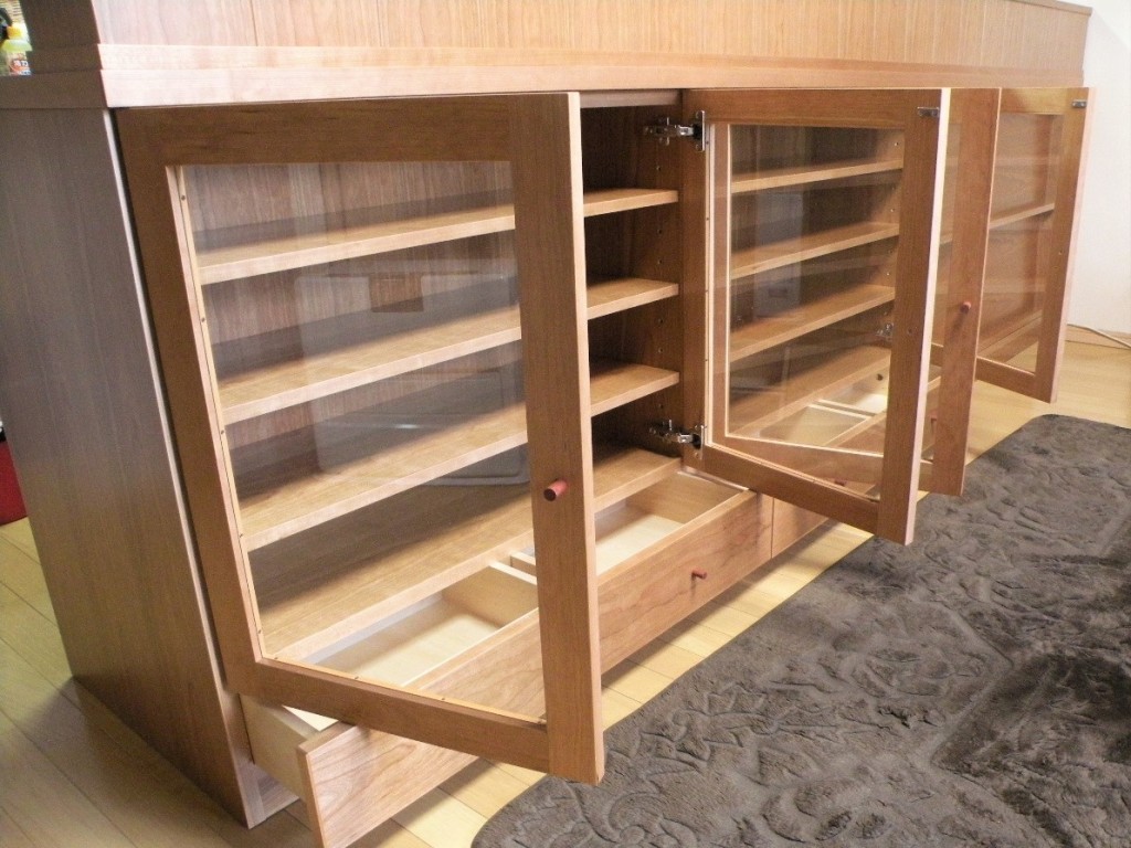 他店でご購入された飾り棚を長年ご使用されていましたが、収納力とお部屋との統一感等を考慮され、今回当工房へオーダーいただきました。