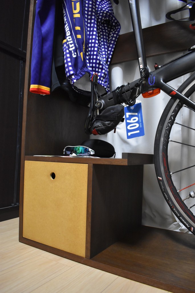 お持ちのロードバイクがピタリと収まり、且つ極力省スペースであることがご希望でしたので、寸法の設定が重要になってきます。