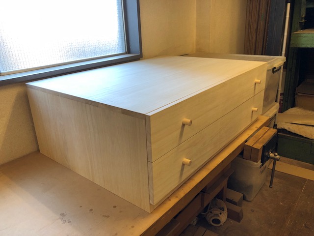 現場のサイズに合わせて制作した家具は、最終的に納めるまで気が抜けません。