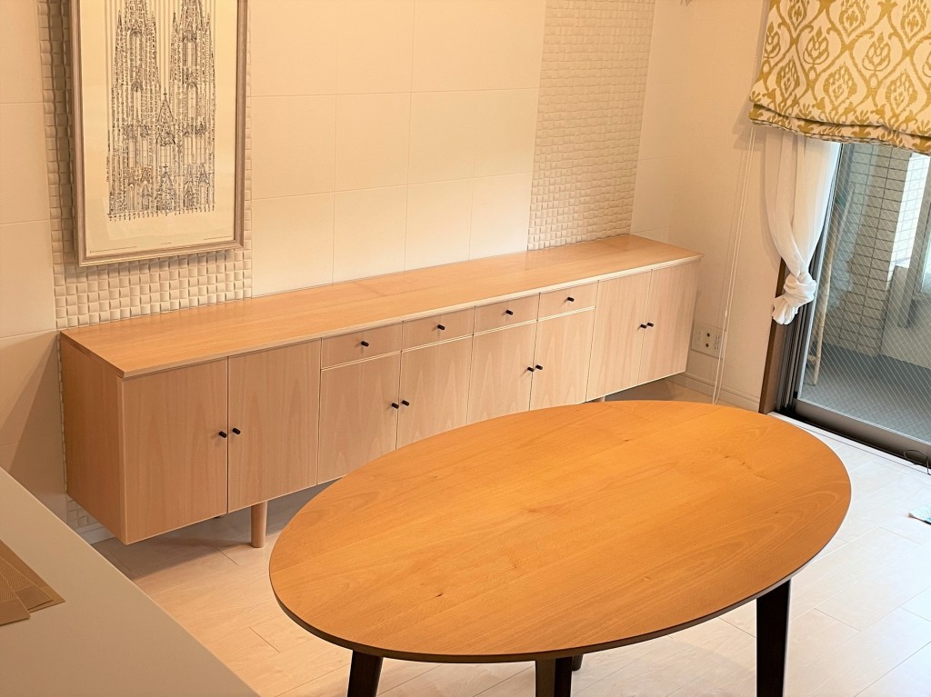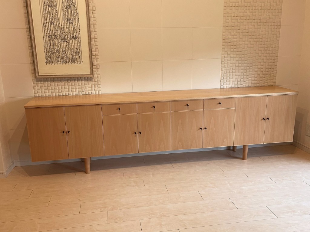以前、ブナのテーブルをお納めしたお客様から、同じ空間に置くテレビボードのご依頼をいただきました。