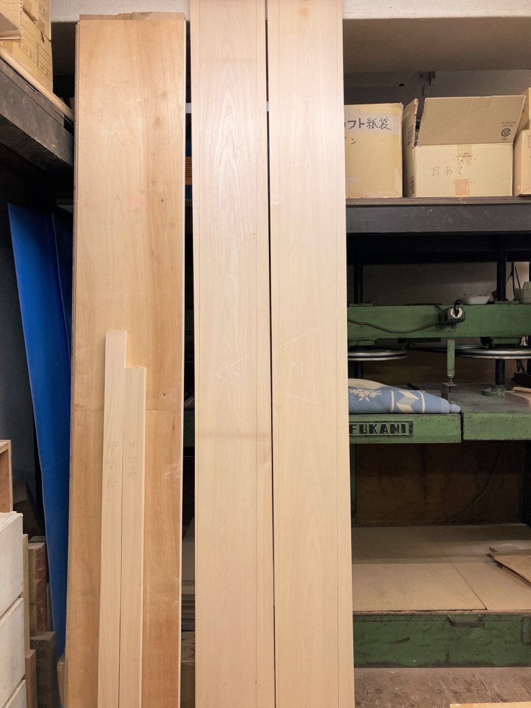 専門の会社に在庫していたブナの薄板を持ち込み、合板を制作してもらいます。
