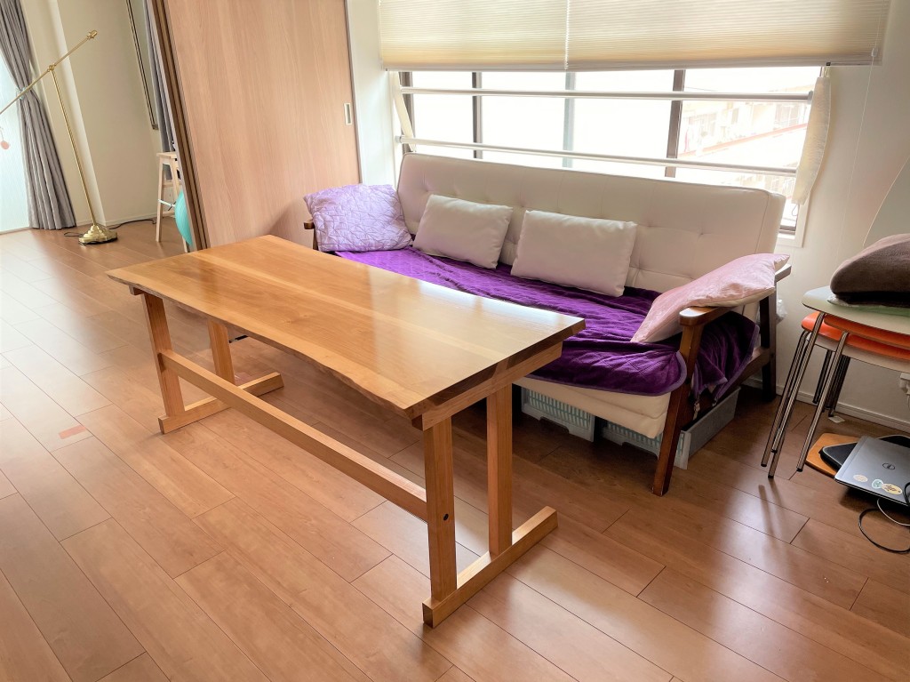 納品時、ご主人はご不在でしたが、当日夜に早速メールをいただき、「素晴らしいテーブルで、とても満足しています」とのありがたいお言葉をいただきました。