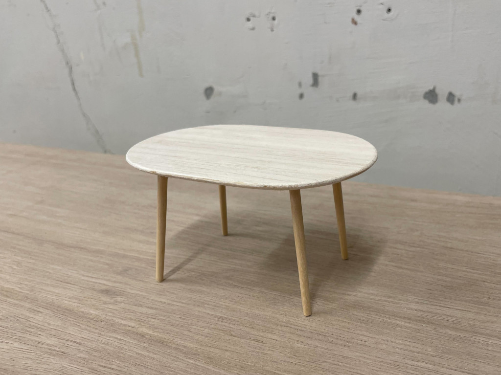 椅子が収まるサイズで、お好みの形のテーブルが見つからず、オーダーメイドという流れになりました。