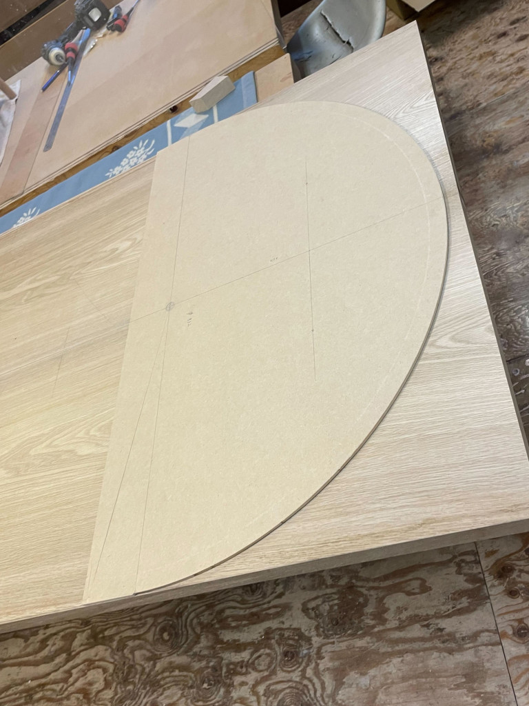 大きな半円の定規を作り、墨付けをします。