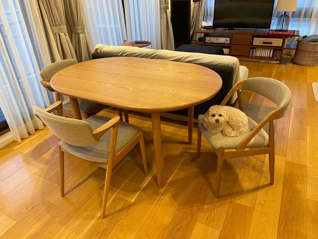 机をお納めして完成したダイニングのセットは、まるで元から在ったように馴染んでいました。