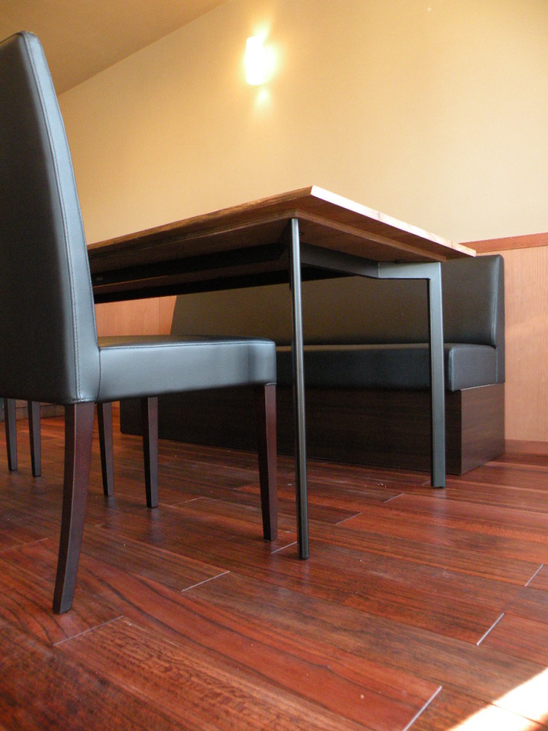 脚は他のテーブルや椅子と合わせ、黒仕上げの鉄脚とし、調和を図りました。