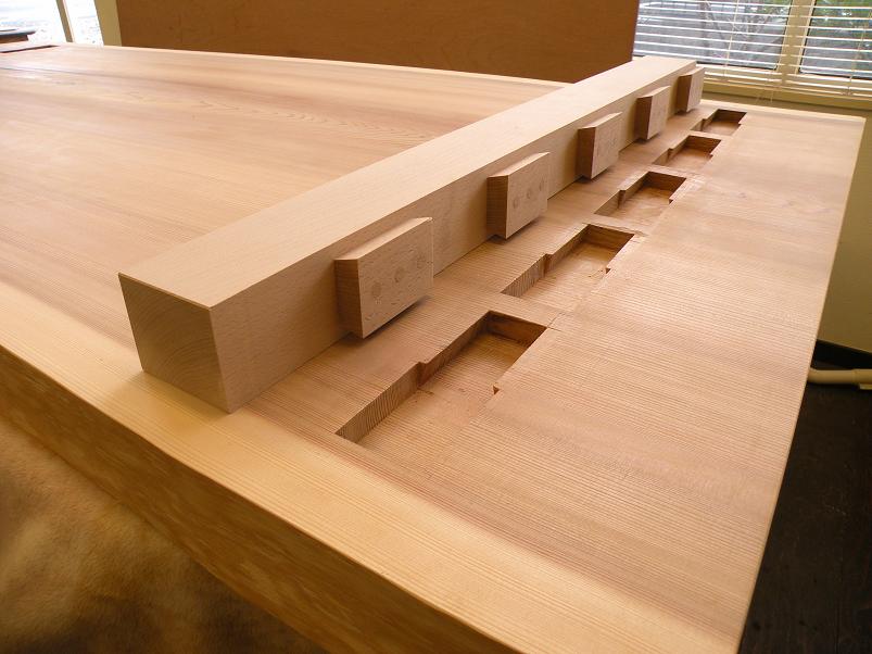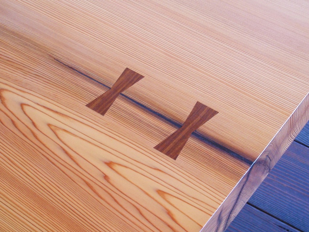 天板の割れにはちぎりという割れ止めも入れ、飾りに。