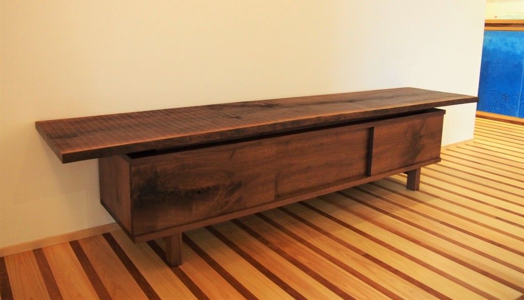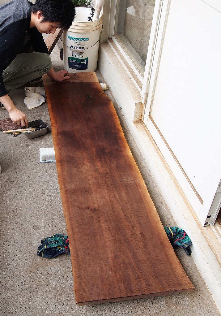 製材したままのブラックウォールナットの板を使用したベンチを気に入られて、