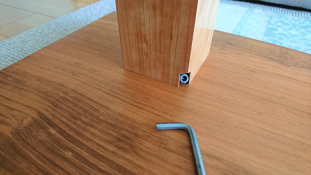 脚は重みのある天板をがっちりと支えるよう90mm角で制作しています。