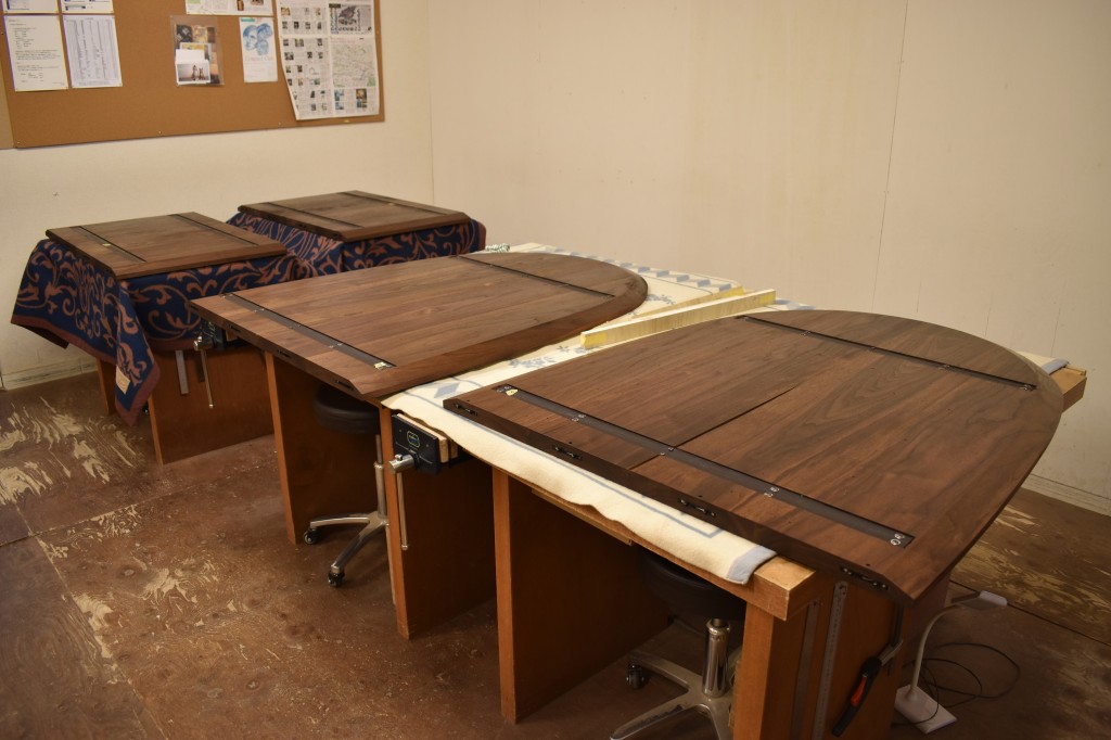 この時左右の天板の木目がピタリと合うよう厳密な木取りとはぎ合わせを行っています。