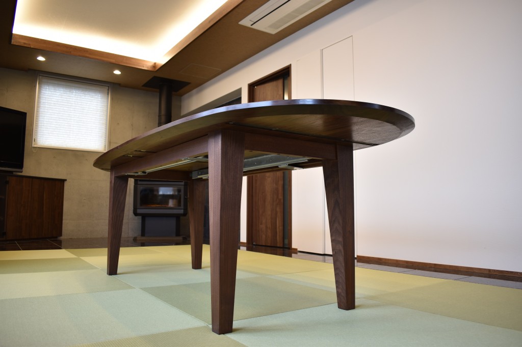 オーダーメイド家具  オーバルテーブル【ブラックウォールナット】無垢 エクステンション仕様