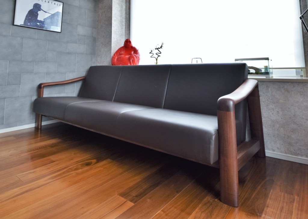 オーダーメイド家具 3人掛けソファ【本革・ブラックウォールナット】無垢