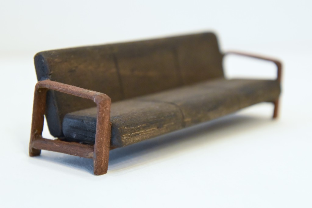 パーツは左右脚兼アームと背と座のクッション、座受けの框のみという少なさです。