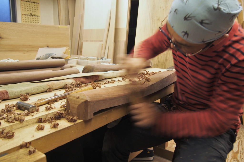 楕円は当工房にある機械では加工ができないので手鉋でひたすら削っていきます。