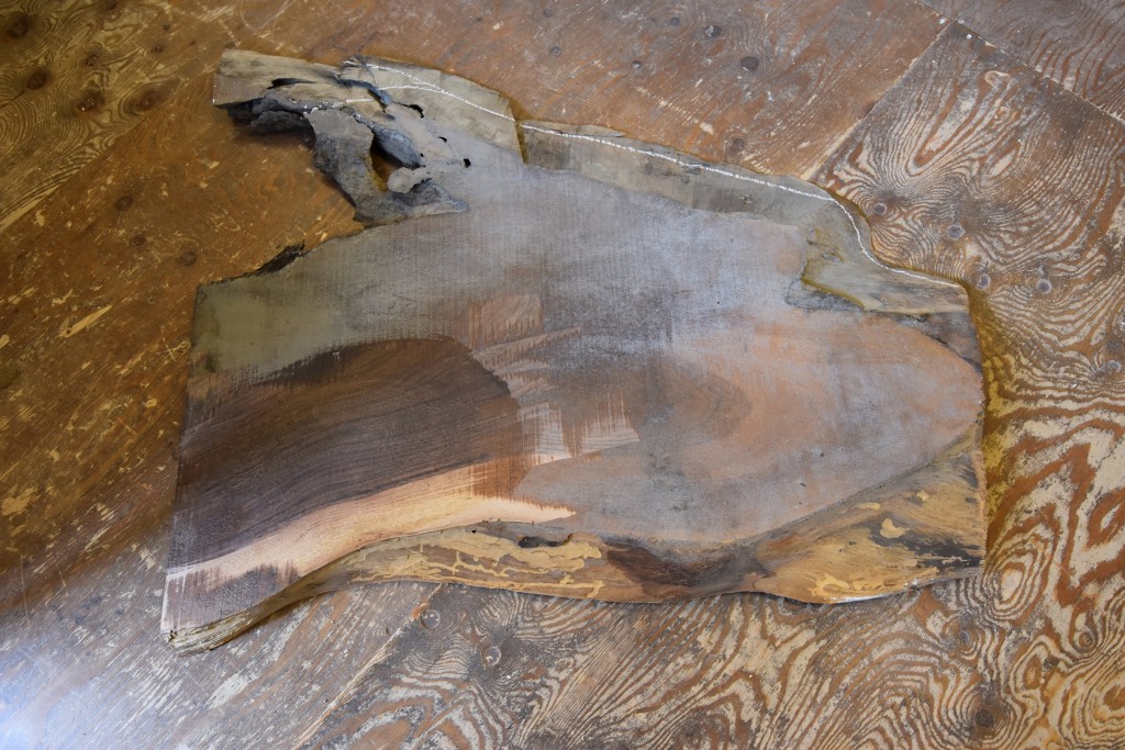 表面を削り、木目や表情を確認したうえで、腐食して使えない部分と活かす部分を決めていきます。