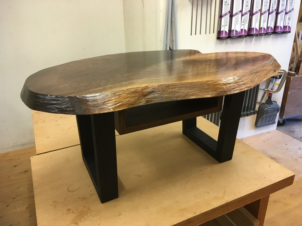 特徴的な形状のブラックウォールナットを使ったローテーブルのご依頼をいただきました。