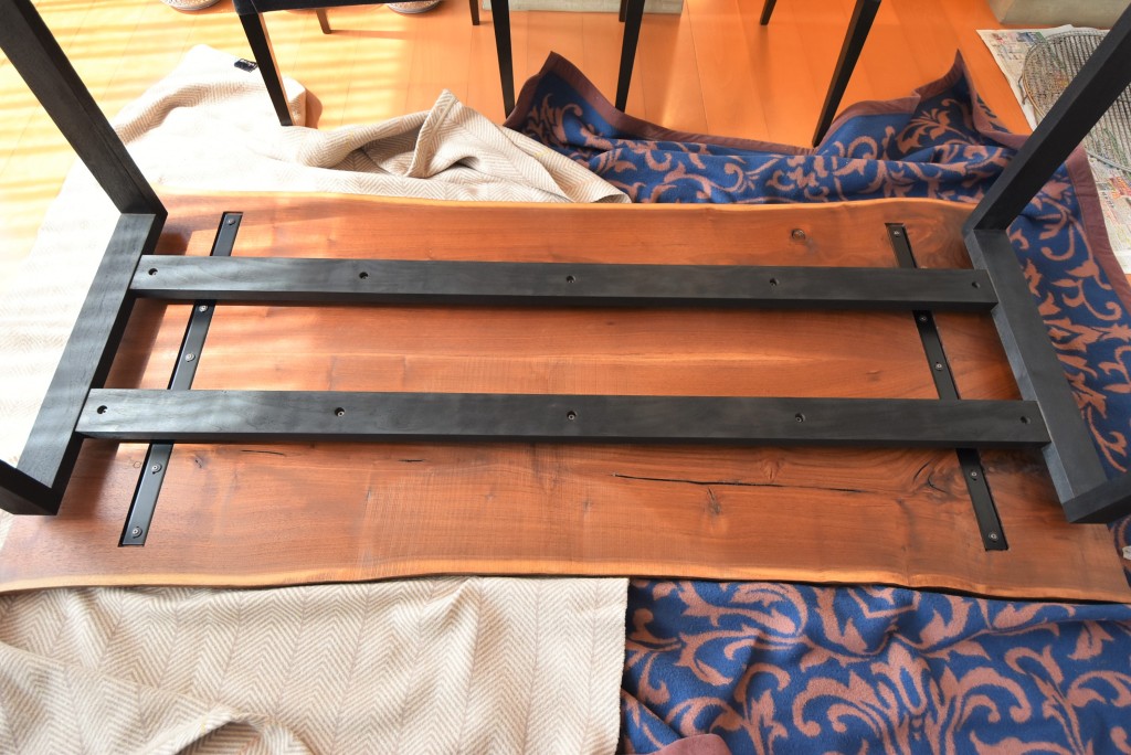 天板裏には、こちらも黒く焼き付け塗装した鉄製の反り止めを取り付けています。