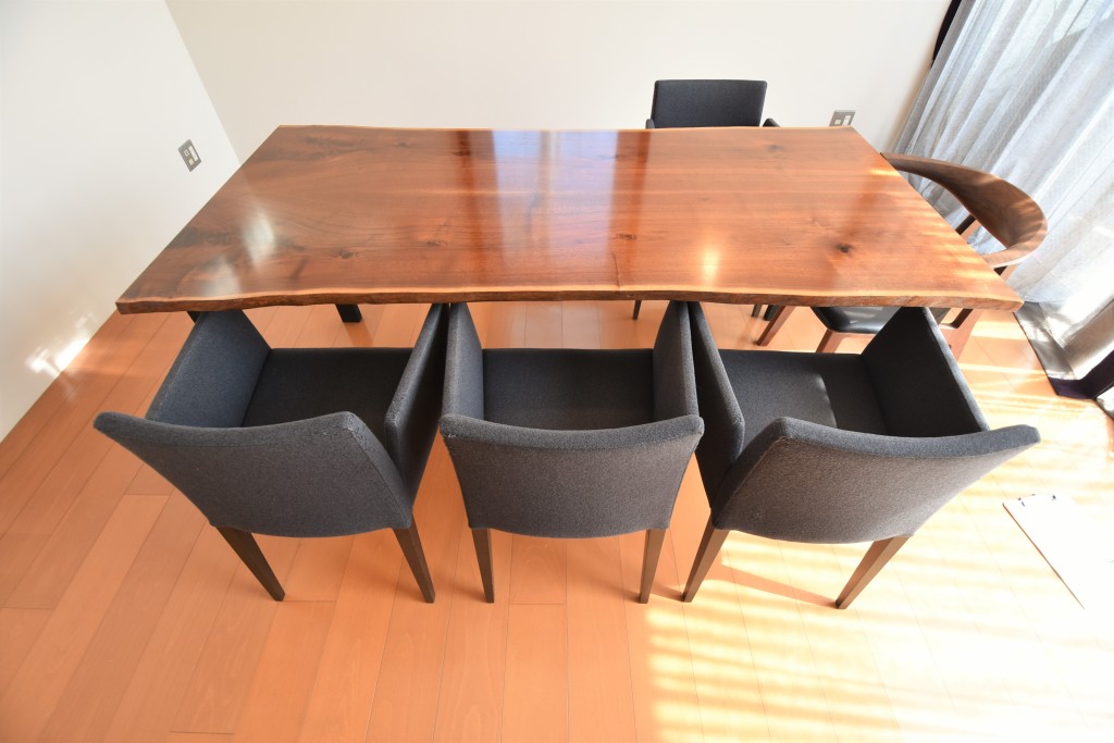 無垢材で、サイズは普段4人掛けで最大8人掛け(但し周りの動線は確保したい)、部屋に合うシンプルなデザイン、というものでした。