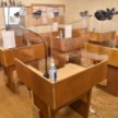 作業台ごとにアクリルを立て、生徒間での飛沫を防いでいます。