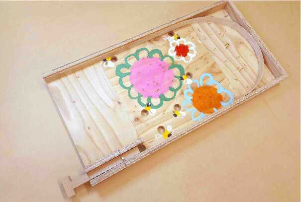 - ビー玉を打つ、レールに沿って進む、釘に当たる、穴に落ちる、を観察しながら自分だけのパチンコ台作りに挑戦します。できたパチンコ台の穴や釘の形から想像を膨らまし、絵を描きます。世界で一つだけのゲームになる喜びを学びます。