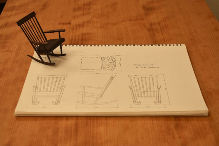 - 「少し高級感のある座り心地のよさそうなロッキングチェアーはないものか」とネットで検索していたところ、「オーダーメイド」の惹句にひかれて貴工房のHPに行き着きました。身体計測して図面を引き、ミニチュアまでつくるという丁寧な制作ぶりに、「これはすごい!」と思ったのです。友人に話したら、「すばらしい!ぜひ作ってほしい」と背中を押されました(人の財布だと思って……)。今の家に引っ越したときにも本棚をオーダーしたので、オーダーメイドの良さは分かっていましたが、まさかそれでロッキングチェアーをつくることになるとは自分でも予想外でした。